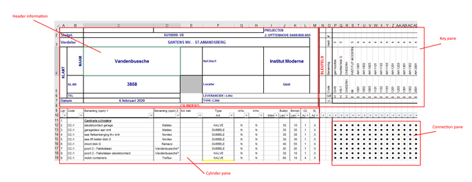 Bij de afhandeling van de import/export van het sluitplan moet de sjabloon rekening houden met de volgende hoofdstructuur: